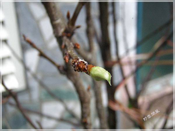 前些日子依農曆說春天來了,實在也沒聽到春天走近的腳步聲,光是寒風細雨的天氣就夠惱人不已。直到有天在氣候仍冷颼颼的日子裏,在庭院裡不經意地看見一整個冬天葉落形如凋零的九芎冒出了新芽,點點嫩綠小芽在寒風中微微顫動,不禁心底透上一股股欣悅的分子,在我體內的血液裏開始流竄起來,讓腦袋清醒地肯定春天真的來了。