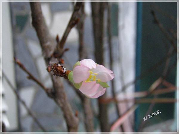 返家後便努力照三餐反覆測試。如此幾天後,葉子意思意思掉了幾葉,卻見一處枝節冒出了個芽,心想冒芽不就宣布沒望了,是不是這會兒要再來重施故計撩狠話了呢?!說時遲那時快,發現綠色的表面漸漸似乎透出了淡淡的粉色,隨著時間又過約兩天,我雀躍地肯定真的是花苞!就這麼僅僅的一朵小花朵,在3月3日那天終於慢慢地羞澀綻放,約10來天從綻開到凋落的粉紅小花朵,竟夠我也隨之興奮了好幾天,難道 ~ 難道這就是「小確幸」!?嘿,當然是嘍,而且太幸福了!!!至今又零零散散地開著幾朵花,燦爛地掛在枝頭上,不多但滿足了。