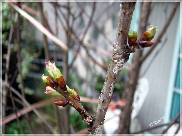 嘿,說也神奇,又過了一週後竟改觀了,這棵樹開始冒綠芽長新枝,開枝散葉更是追趕上兄弟姐妹的茂盛狀況,連我也覺得太不可思議。如今轉眼已過隆冬,去年種樹的的期待依舊濃厚,但眼看那樹頂捨不得掉落的綠葉,相較於電視裏播報的櫻花滿樹綻放的盛況,心早又涼了一大截。之後在一個購買花卉的場合,好奇地請教了老闆娘是否有讓櫻花樹開花的肥料?見她微笑搖頭,我繼續追問網路上的欺騙手段讓它開花是否可行?也就是用冰塊或冰水鋪灌在根部四周,造成它的感官錯覺。嘿,老闆娘居然點頭Say Yes!