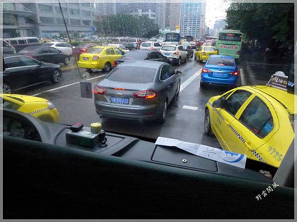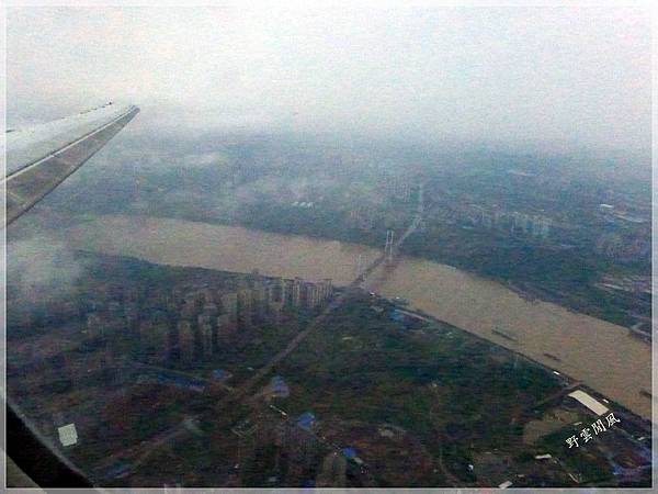 飛行途中,飛過台灣海峽進入大陸區域,越接近目的地,機艙外的雲層更是厚濃。隨著高度漸降,長江沿岸建物已清晰明見,而機窗外斜掛未止的水痕,可以確定這個城市正下著雨。不多時,飛機終於在雨中準時抵達。
