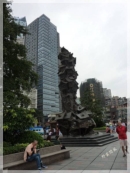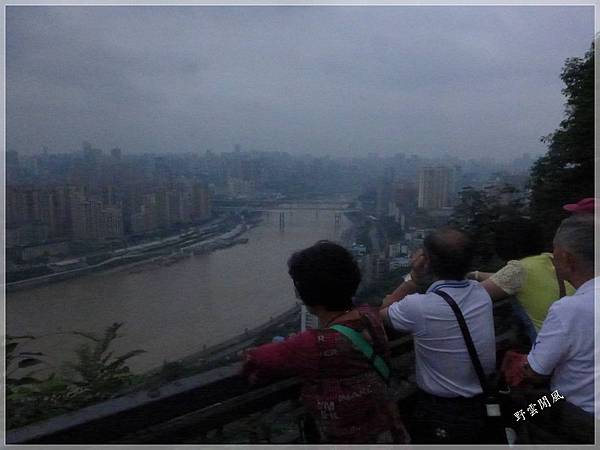 飽餐後,雨也停了,天空還是一片濃厚的灰色,坐上車來到重慶市渝中區長江一路的「鵝嶺公園」,這是重慶地區最早的一個私家花園,目前也是重慶直轄後規範管理的第一個3A級國家旅遊景點。鵝嶺原名為「鵝項嶺」,該園區位於長江、嘉陵江南北挾持處的陡峻而狹長的山嶺上,形狀因與鵝的脖子相似而得名。這環抱重慶半島的兩條江在這裡是最近的距離,鵝嶺便因背倚山城,高挑出世,順兩江之流向而西望,座擁雄、險、曠、秀的自然風光。相傳蜀漢時期的太守李嚴,曾企圖在此鑿穿高崖來連通兩江。