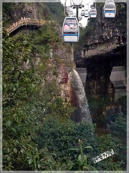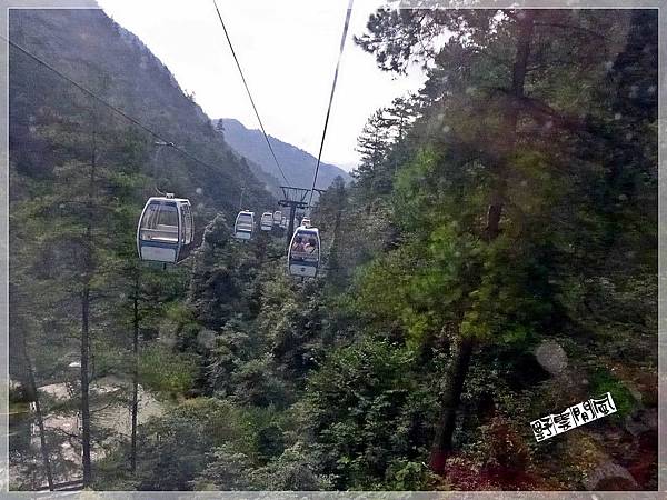 已近中秋時節,素有火爐之稱的重慶上午仍稍悶熱,但一進入黑山谷的景區內卻是明顯陣陣清涼送爽。大伙兒由景區南門而入,一小段路後便4人一組搭乘索道而下。黑山谷的相對落差達600至1,000公尺,坐在懸空的纜車裏望出,只見峽谷幽深、林木蒼翠間白瀑高掛、溪水長流,遠處峽谷沿著山壁的木棧道上有遊客輕快拾階而下,在群山環抱裏,穿行綠樹濃蔭中,無需怕曬而撐傘遮陽。