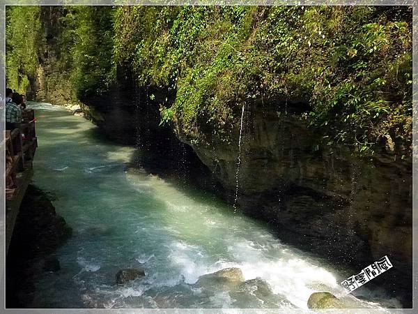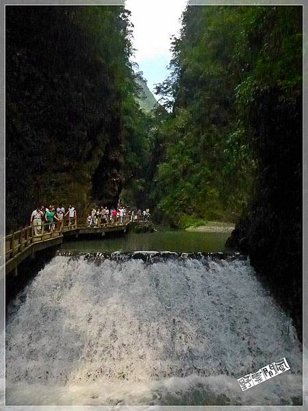 由於峽谷河床落差甚大,水流湍急,嘩啦聲響徹整個山谷;加上兩岸鐘乳石密佈,古藤垂懸,泉瀑流瀉,讓人行走其間震撼不已。尤其當地人稱作中豬喉的鯉魚峽,是鯉魚河最為險峻逼仄的地方,也是峽谷中最奇最美的一段。筆立兩岸的山岩高700 ~ 1,000多公尺,崖壁最陡處夾角約僅有70度角,左右兩岸極似已吻在一起,獨留一縫容許河水流過。河床中最窄一段叫「一線天」,長100公尺,寬不到兩公尺,水有數公尺深,陽光終日不到,水霧騰裊,涼意襲人,人只能游水或乘皮筏漂流而過。行在其間水上,只要兩臂一伸開,就可同時一邊摸到重慶的山,另一邊摸到貴州的山。